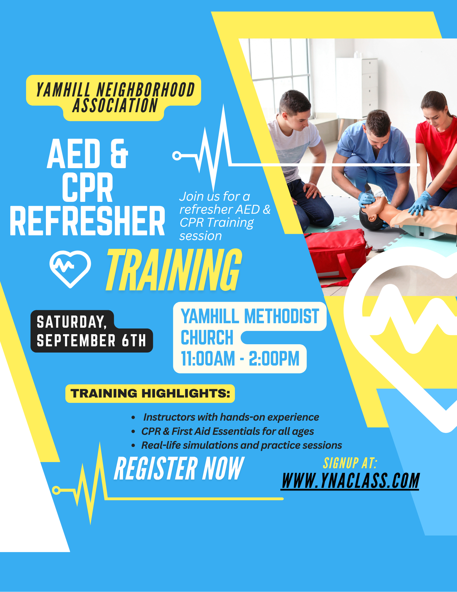Yamhill Methodist Church 195 SW Laurel St, YamhillCPR & AED Refresher Class September 6th, 2025, at 11:00 am Join us for an in-person CPR & AED Refresher Class at the Yamhill Methodist Church! Whether you're a healthcare professional or simply want to be prepared in case of an emergency, this class is for you. Our experienced instructors will guide you through …